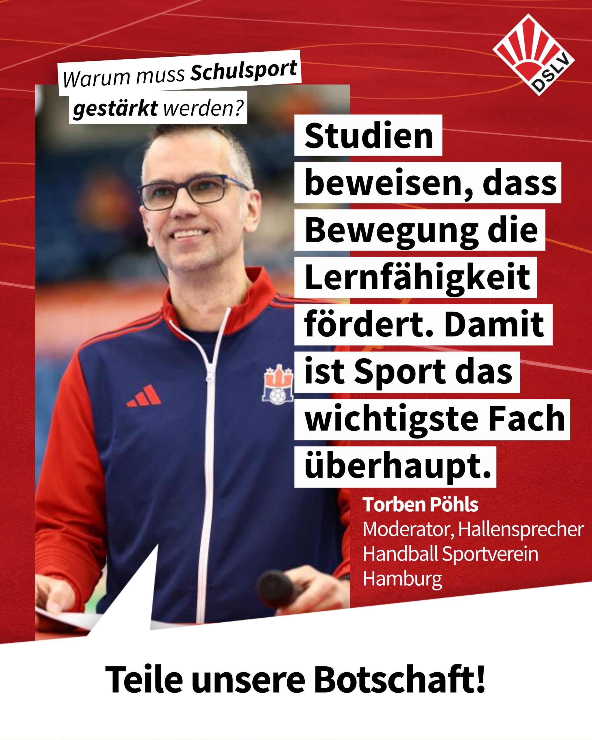 Mit der Kampagne Schulsport stärken! unternehmen wir als Verband den Versuch, Öffentlichkeit für dieses Thema erneut herzustellen und Stimmen pro Schulsport eine Plattform zu geben. Die Grundidee ist einfach:
